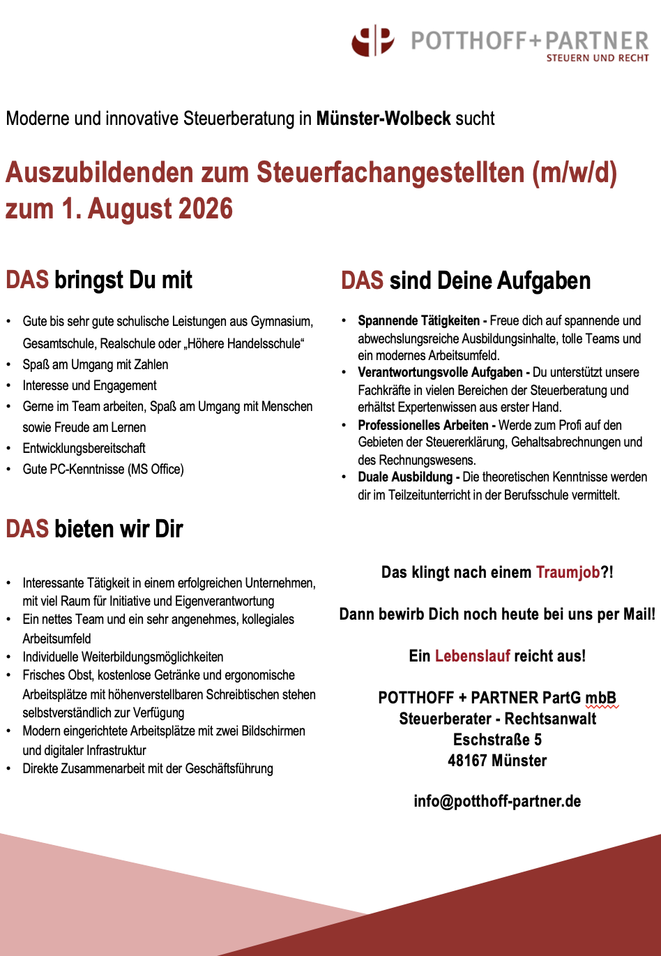 Azubi zum Steuerfachangestellten (m/w/d) August 2026